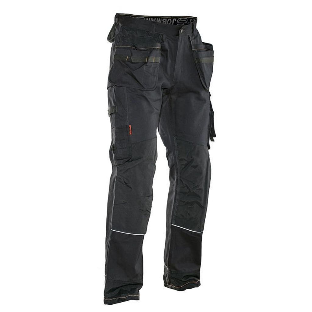 Jobman arbetsbyxa 2732 är en byxa i slitstark bomull, speciellt utvecklad för Jobman. Något lättare kvalitet som ger svalare arbetsklimat. Förstärkta detaljer som hölsterfickor, bakfickor och tumstocksficka. Knäskydden går att justera i två höjdnivåer. Dragsko i benslutet förhindrar kallras.