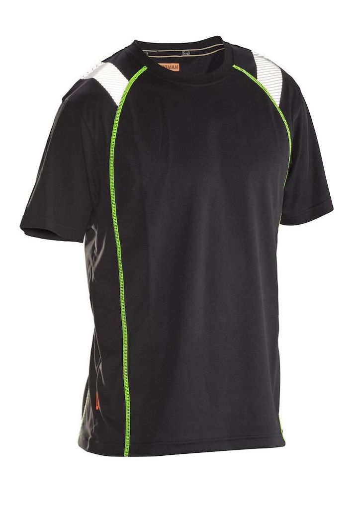 Jobman 5620 Spun-dye vision är en T-shirt i följsam polyester, ärmar och sidpaneler är i mjuk interlock och fram- och bakstycke är gjorda i bird-eye trikå för ökad fukttransport.