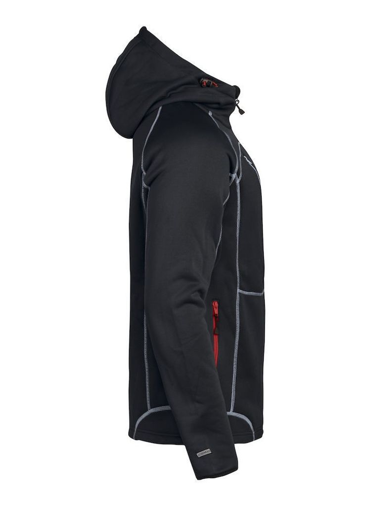 Jobman följsam polyester hoodie med fleeceinsida. Kroppsnära passform ger bra rörlighet. Reglerbar i huva och nederkant med dragsko. Funktionsmaterial. Blixtlås fram med vindslå. Reglerbar huva med nätfoder. Flatlocksömmar. Bröstficka med mobilfack och blixtlås. Sidofickor med blixtlås. Stora öppna innerfickor.