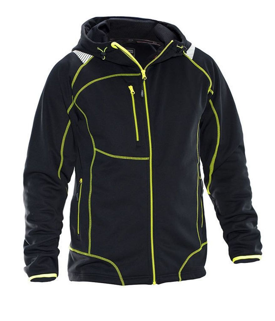 Jobmans Hoodie Vision Lite är en följsam polyester med fleeceinsida som isolerar. Bröstficka med ID-kortshållare. Kroppsnära passform ger bra rörlighet. Reglerbar i huva och nederkant. Sömmar och dragkedja i fluorescerande färg och reflexer på axlarna för förhöjd synbarhet.