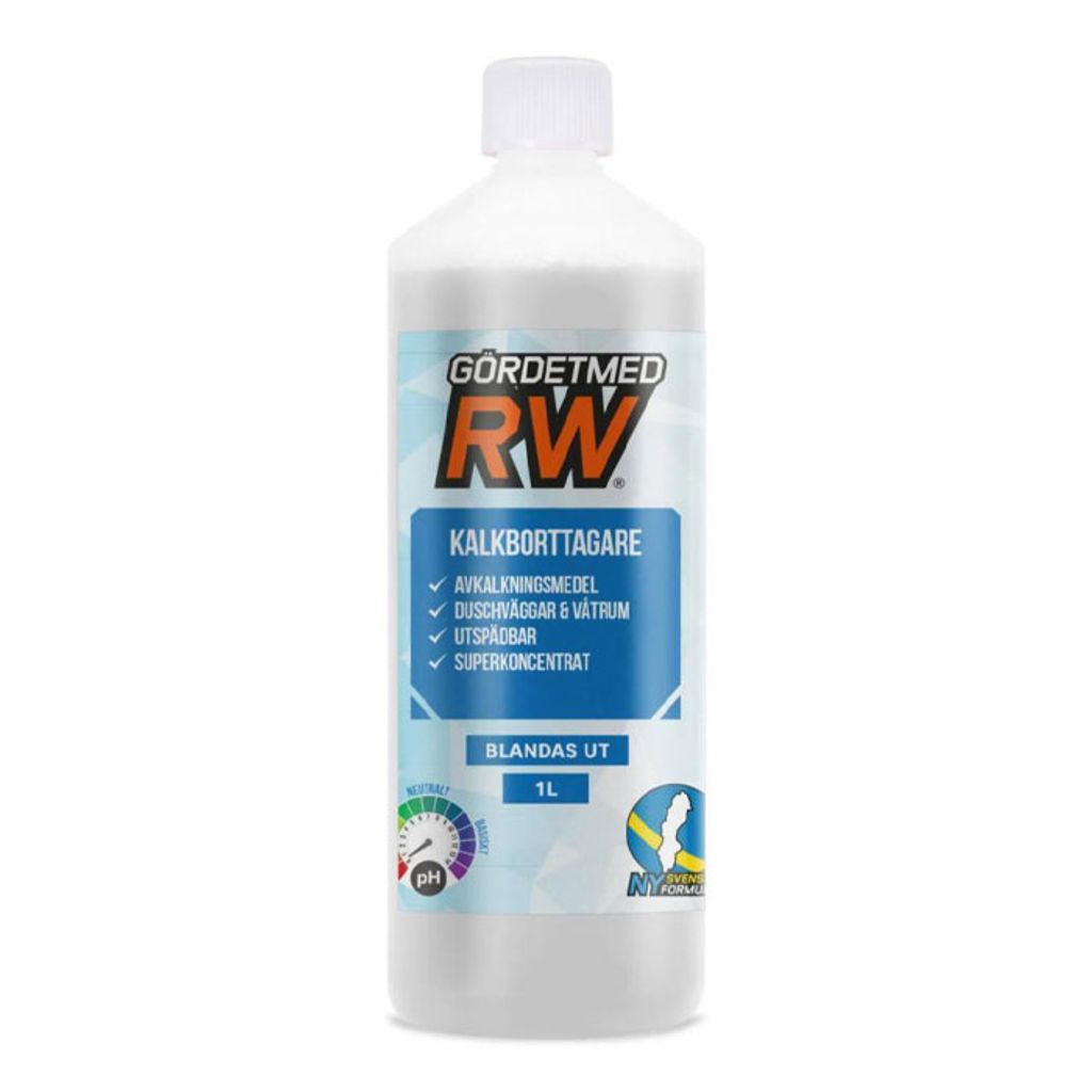 GördetmedRW avkalkningsmedel är ett syra-baserat superkoncentrat framtaget för att snabbt och effektivt avlägsna kalkavlagringar, rost och oxidbeläggningar. Kalk kan annars skapa fula beläggningar, försämra ytskikt och i längden påverka funktionen på allt från blandare och duschytor till maskindelar. Med en koncentrerad formula får du hög rengöringskraft när det verkligen behövs.