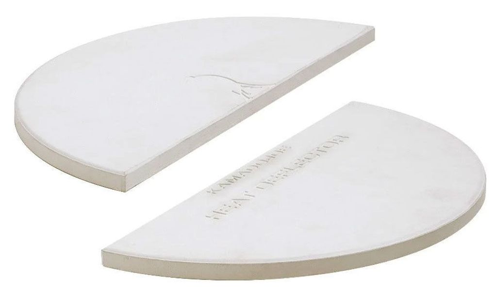 Kamado Joe Värmeavledare är ett essentiellt tillbehör för att skapa olika värmezoner i din kamadogrill, med två halvmåneformade keramiska plattor för indirekt grillning.