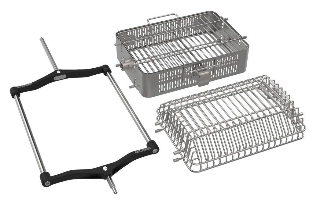 För grillentusiaster som vill utforska nya matlagningsmöjligheter, erbjuder Kamado Joe JoeTisserie korgsats en spännande utvidgning av dina kulinariska färdigheter. Denna innovativa sats är designad för att ge enkelhet och mångsidighet till din grillning, vilket gör det möjligt att laga en mängd olika rätter på ett kreativt sätt.