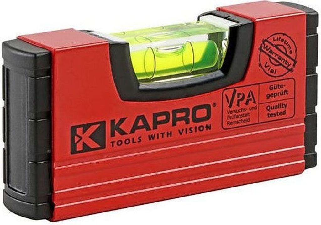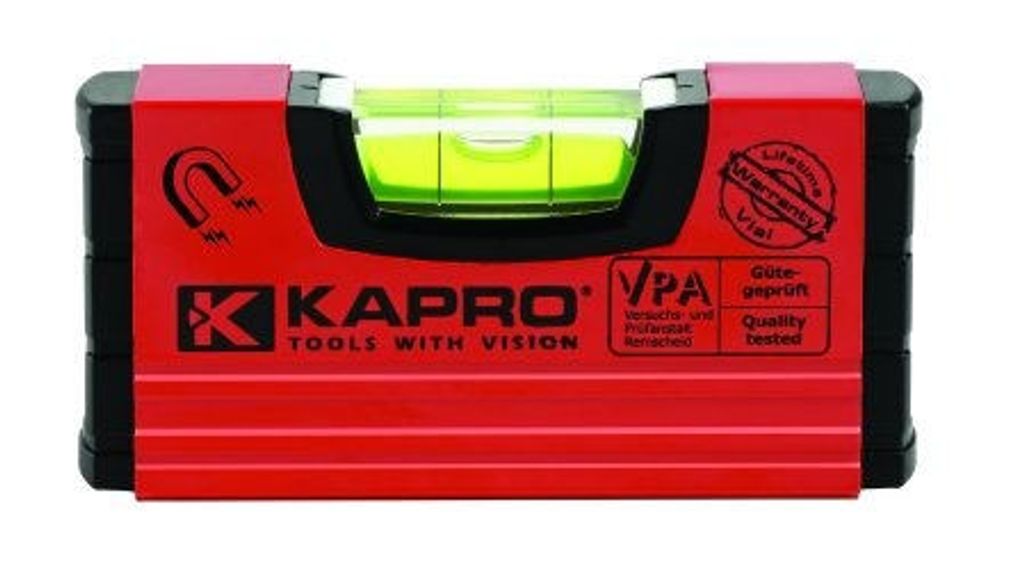Kapro Handy Pro är ett 10 cm kort minivattenpass i aluminium med kraftig magnet och stötsäkra ändkapslar i ABS nylon perfekt att ha i fickan. Utrustad med stor, tydlig och lättavläst okrossbar libell med noggrannhet på <0,5 mm/m.