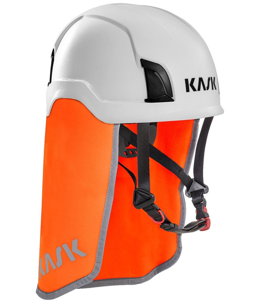 Kask nackskydd som skyddar bärarens nacke och öron mot skadlig UV-exponering