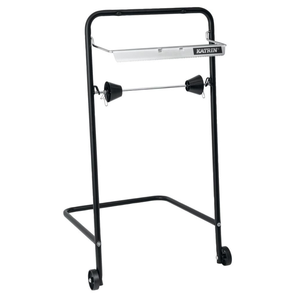 Robust golvställ designat för Katrins industrirullar med en maxbredd på 40 cm. Detta golvställ är idealiskt för enklare hantering och förvaring av torkpapper i industriella miljöer. Utrustat med hjul för enkel mobilitet och erbjuder möjligheten att addera en sopsäckshållare samt hållare till FlexMaster och DuraMaster.