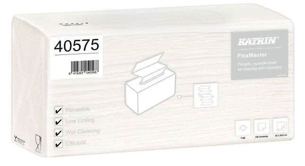 Den generösa storleken på 420 x 335 mm ger en stor torkyta, vilket gör den lämplig för allt från industriell rengöring till köks- och laboratoriemiljöer. Med sin kombination av styrka, absorption och hållbarhet är Katrin Fleximaster ett utmärkt val för alla som kräver en pålitlig och mångsidig torkduk.