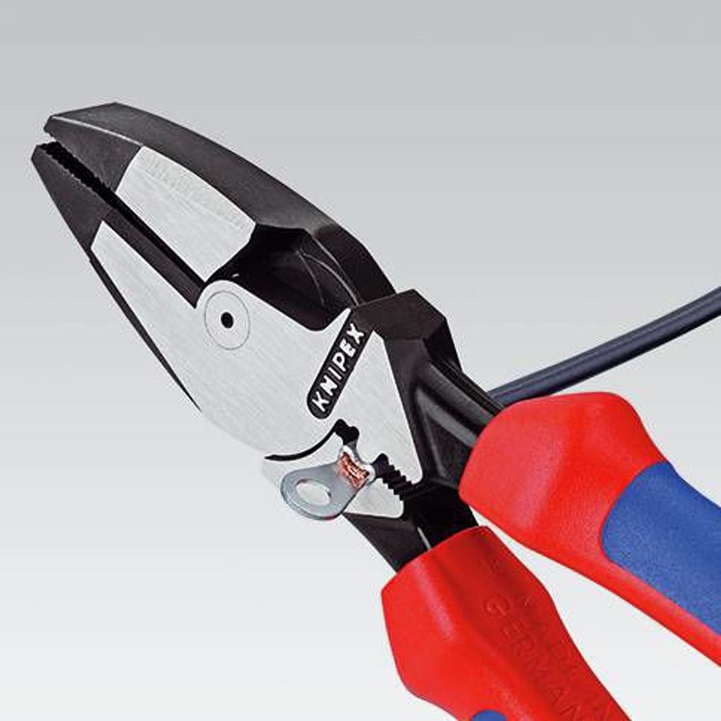 Kabeltång med 50% kraftbesparing tack vare optimerad utväxling. Med skär för mjuk och hård tråd.