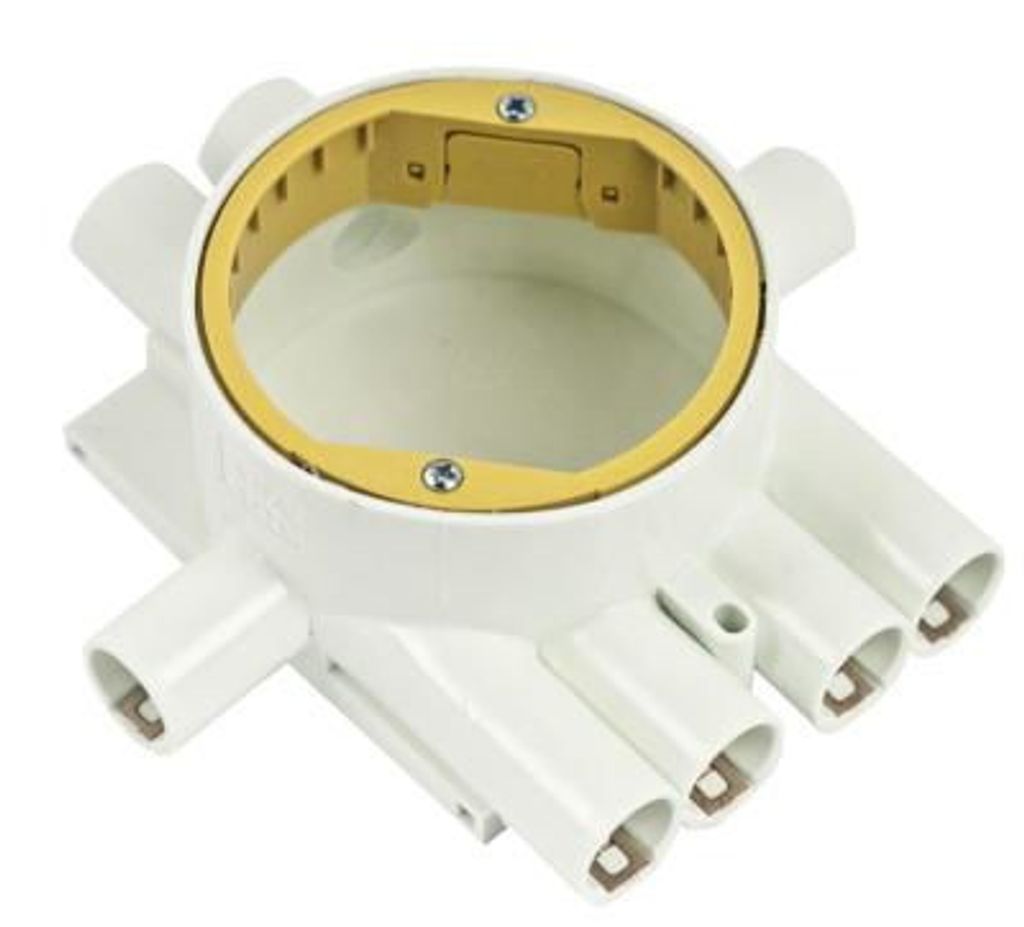 För anslutning av lamputtag och spisdosa. 8 st 16 mm anslutningar med låsfjäder vilket gör att rör och slang sitter ordentligt fast. Justerbar fästning för apparaterna.