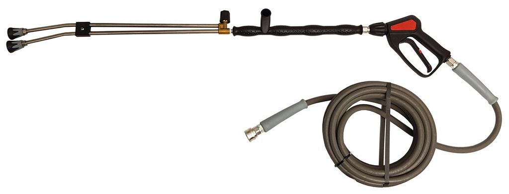 - Högtrycksslang 10 meter och spolhandtag med dubbelt spolrör ingår (KEW-modell).