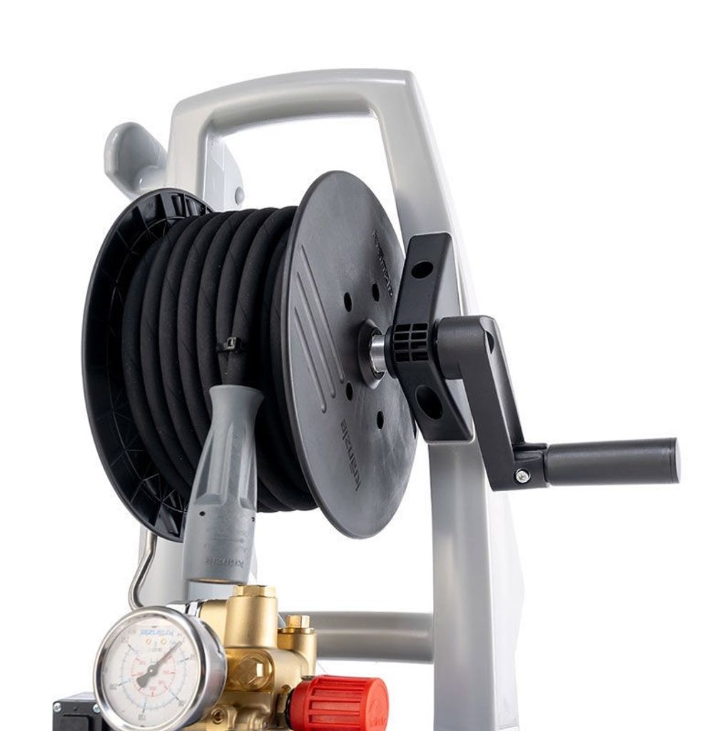 ✅ Praktisk slangvinda med 15 m högtrycksslang för smidig förvaring