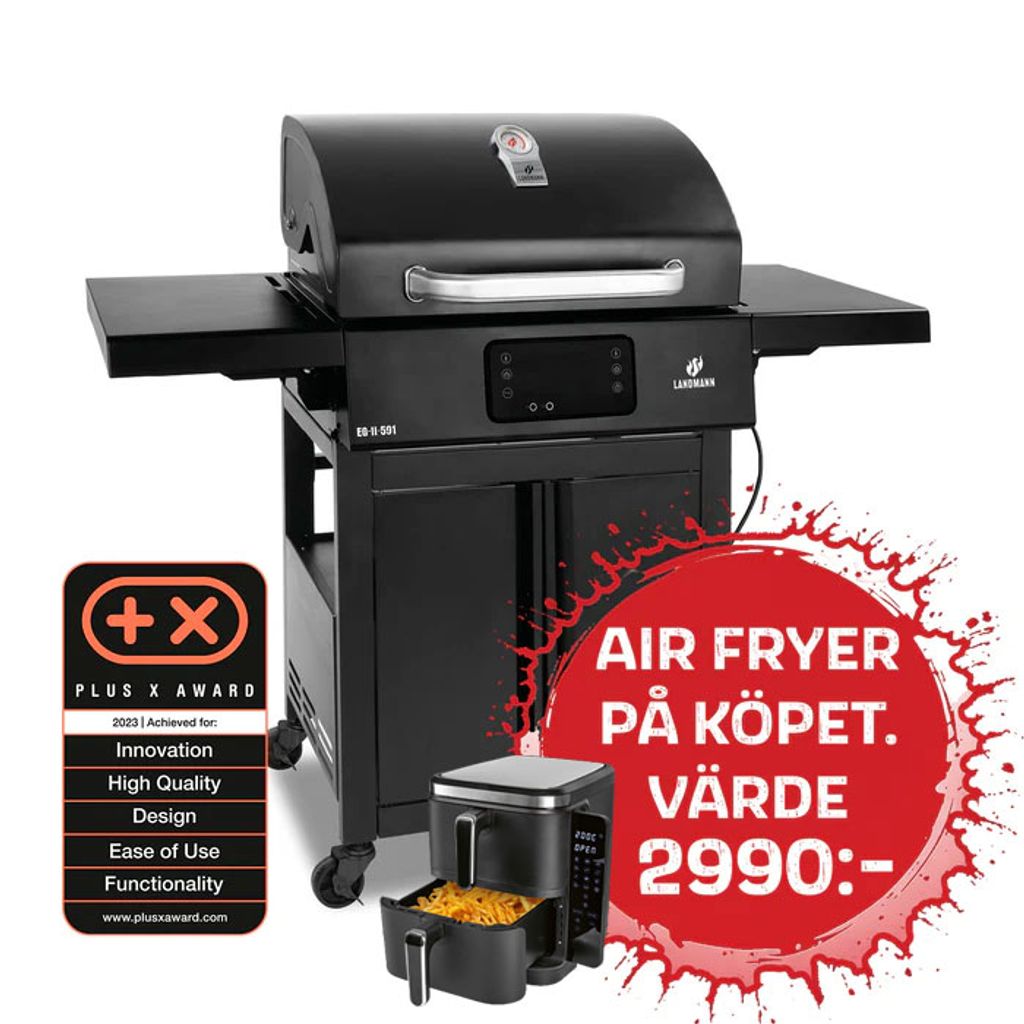 Landmann E-grill ger snabb och bekväm grillning utan kol och väntetid. Starta direkt, ställ temperaturen i 50 °C-intervaller upp till 300 °C och följ allt på touchdisplayen. Locktermometer och två digitala instickstermometrar gör det enkelt att grilla med precision, varje gång.