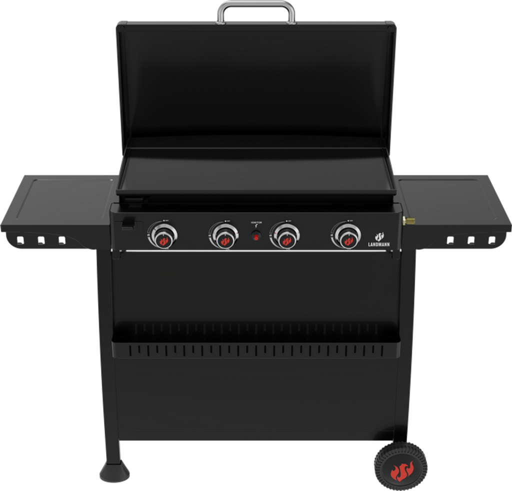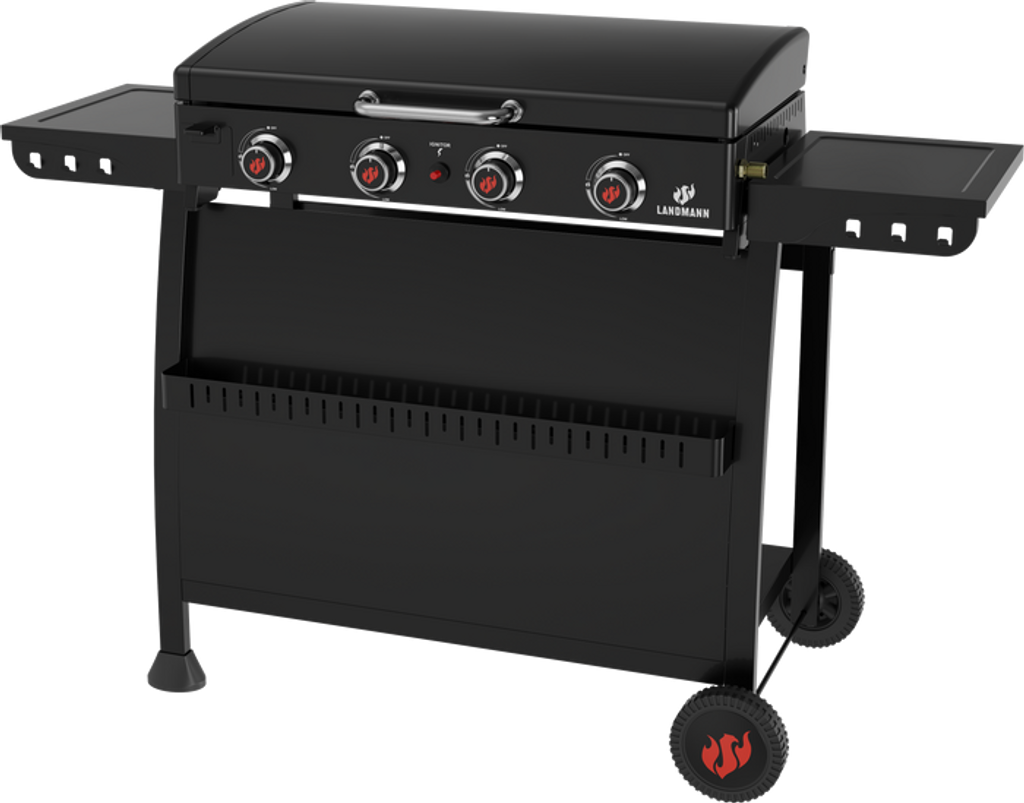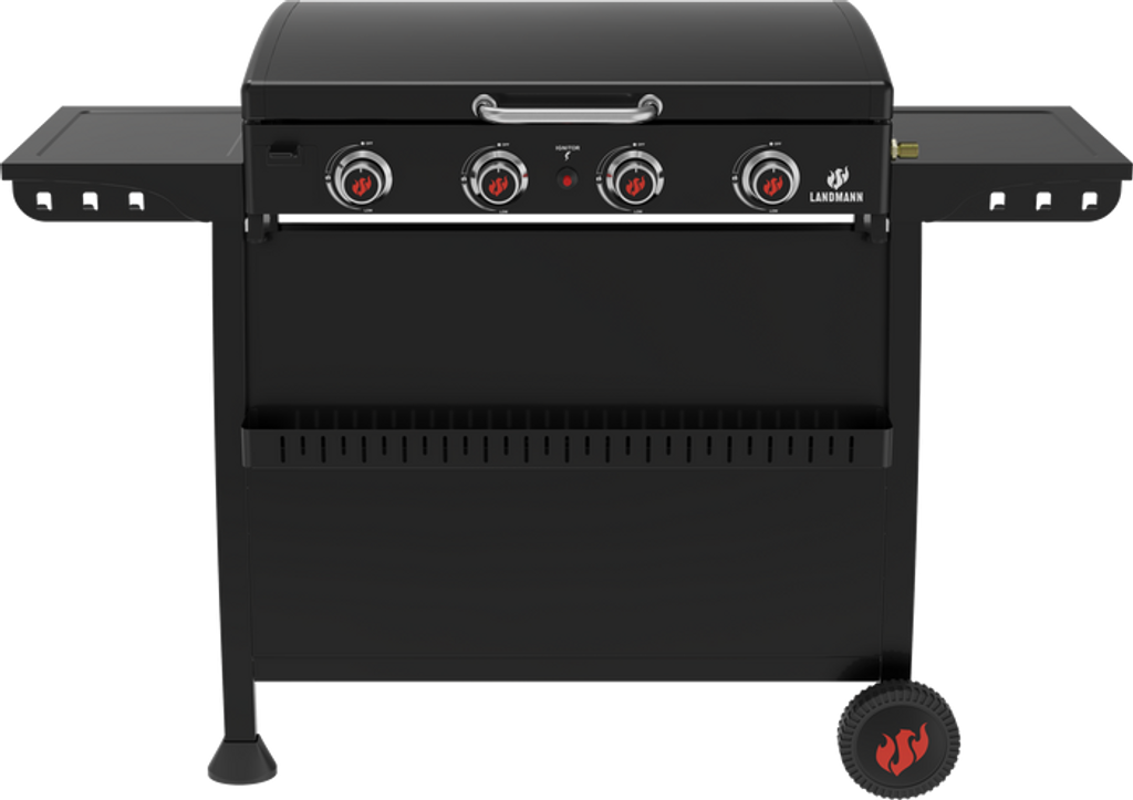 Den robusta konstruktionen i svart pulverlackerat stål ger både hållbarhet och ett stilrent uttryck. Med stora hjul blir den lätt att flytta mellan altan, trädgård och utekök. Landmann Plancha 4.0 är helt enkelt en 2-i-1 stekhäll för dig som vill laga hela måltiden utomhus med kontroll, fart och riktigt bra resultat.