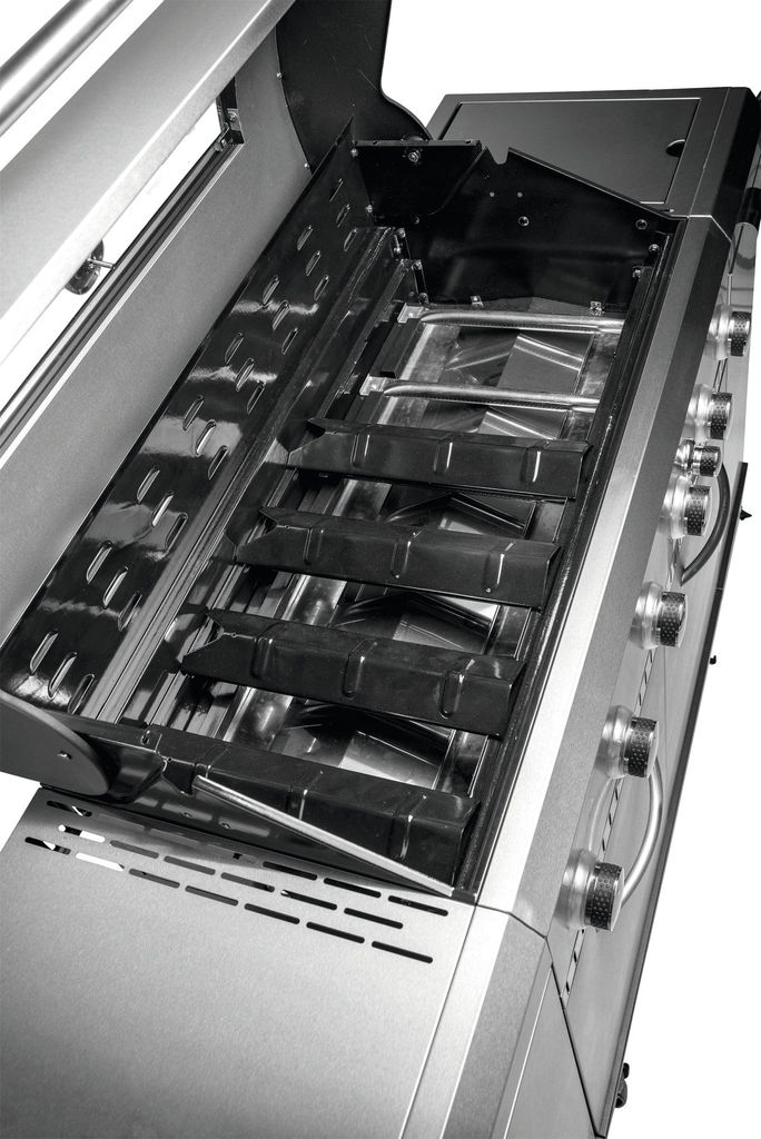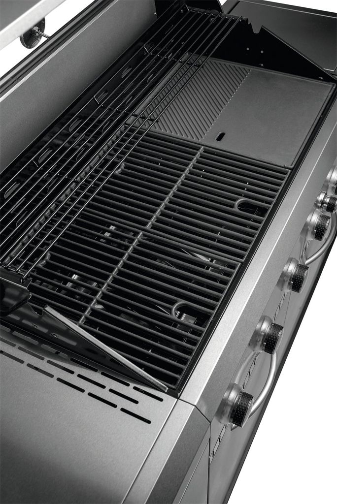 Sex justerbara brännare i rostfritt stål på 3,5 kW vardera ger snabb uppvärmning och kraft nog för allt från indirekt grillning till intensiv stekning. Värmen fördelas jämnt med emaljbelagda värmefördelningsplåtar, vilket gör att hela grillytan kan utnyttjas effektivt. Utöver detta får du en extra justerbar brännare på 3,0 kW för ännu fler möjligheter när du vill förbereda tillbehör eller komplettera huvudgrillningen.