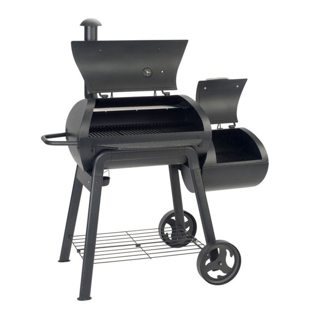 För autentisk amerikansk BBQ tänder du kol, briketter eller trä i sidokammaren. Röken och värmen leds in i huvudkammaren via öppningen mellan kamrarna och du finjusterar temperaturen med sidoventilerna. Vill du grilla direkt placerar du maten över värmekällan i huvudkammaren eller sidokammaren för hög värme och snabb stekyta. För indirekt grillning lägger du maten bredvid värmekällan i någon av kamrarna för jämnare, långsammare tillagning med saftigare resultat.