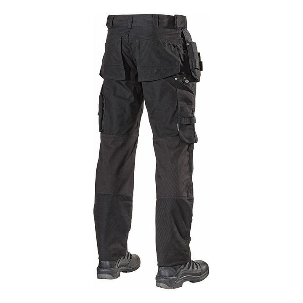 - Knäskyddsficka i två höjder, tumstocksficka, benficka med dragkedja och in- och utvändig telefonficka samt ID-korthållare på höger.