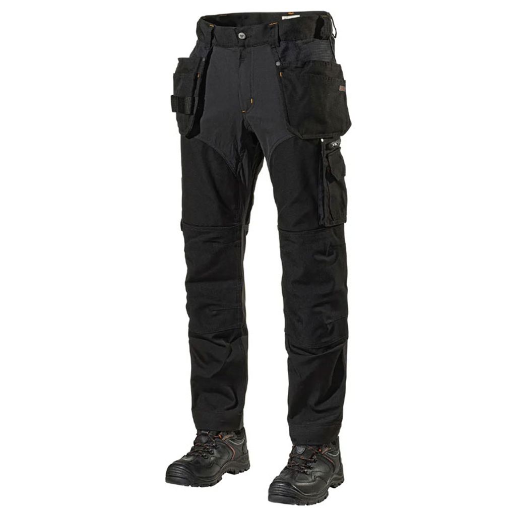 Knäskyddsfickor i stretchkevlar levererar optimal balans mellan rörlighet och slitstyrka. De förböjda knäna förstärker passformen och gör att byxan följer dina rörelser när du klättrar hukar eller sträcker dig. Förvaringen är generös och genomtänkt med förstärkta hängfickor större volym två framfickor infällda stolpfickor bak tumstocksficka samt benficka med dragkedja. Den invändiga telefonfickan kompletteras av en utvändig vinklad telefonficka med smart magnetlås som säkert håller mobilen på plats.