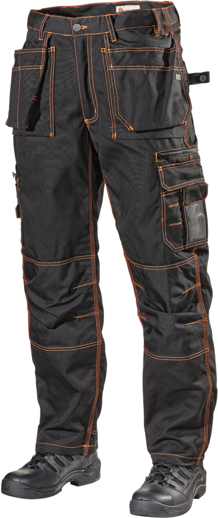 Hantverkarbyxa med kraftig bomull/polyester för bästa slitstyrka. Trenålssömmar för extra hållbarhet. Hängfickor, bakre benslut och knän förstärkta med Cordura.