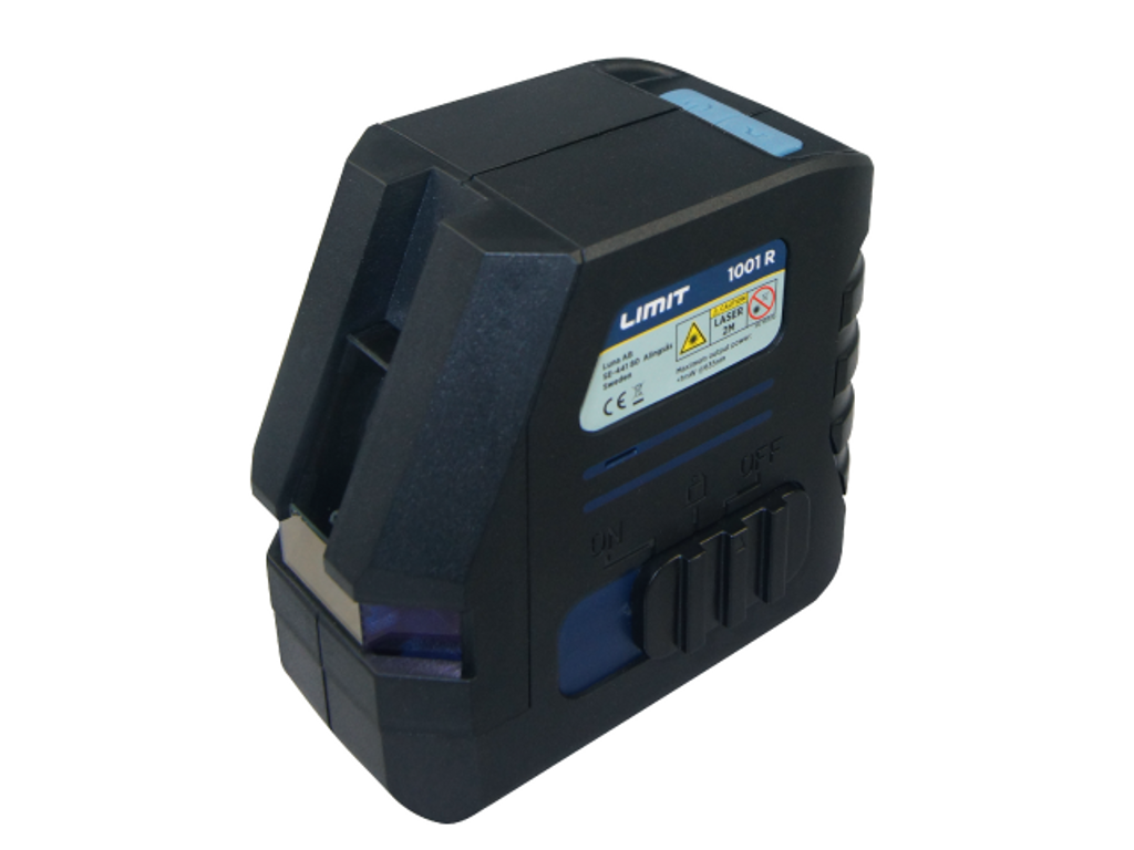 Limit 1001R Korslaser med starkt rött laserljus som ger skarpa laserlinjer. Kompakt smidig korslaser med en horisontal och en vertikal linje. Den vertikala linjen når 110 grader upp i taket.