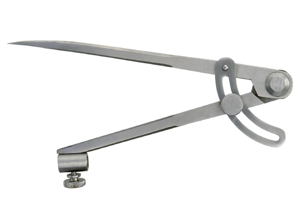 Limit Bågcirkel. Av stål. Rektangulära skänklar. Med utanpåliggande båge och hållare för blyertspenna. Levereras utan penna.