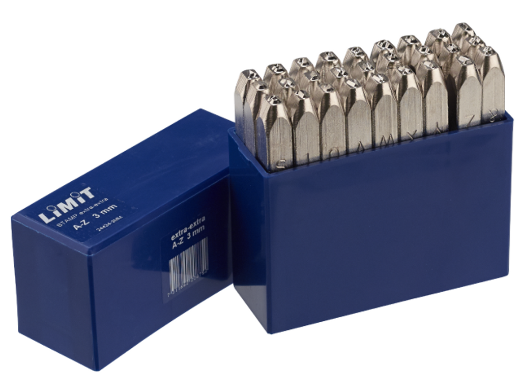 Limit Stämplar för stål och metall. 27 bokstavsstämplar A-Z och &-tecken. För stämpling i material med draghållfastighet upp till 150 kp/mm². Lämpliga för stämpling i rostfritt stål. Nickelpläterade för att skydda mot förorening genom transferering av meta