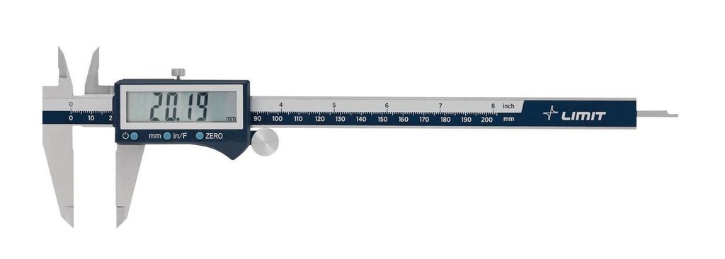 Digital skjutmått med stor LCD skärm med 13 mm stora siffror för snabb avläsning av mätresultat. Kan mäta både innerdiameter, ytterdiameter, djup och höjd samt ritsfunktion. Skala i rostfritt stål.