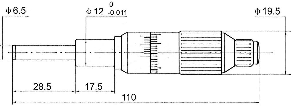 Limit inbyggnadsmikrometer med nonie för avläsning 0.01 mm. Mätyta av hårdmetall. Med friktionstrumma.