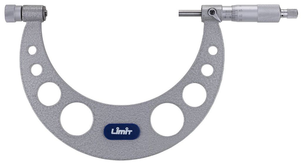 Limit mikrometer med lackerad stålbygel och mattförkromad skala. Härdad spindel och insatskolvar 8.0 mm med finläppade mätytor av hårdmetall.