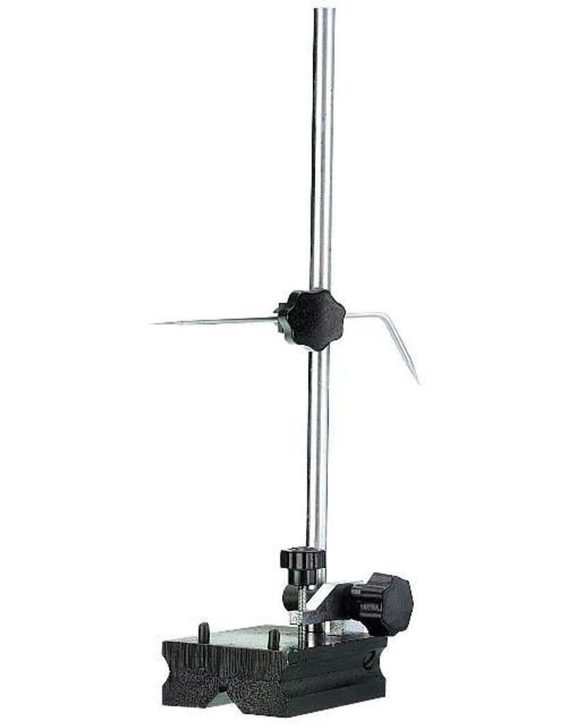 Limit ritskubb med kraftig fotplatta med V-spår i bottenplanet. Fotplattan har två genomgående styrstift. Spindeln är monterad i en vipparm med skruv för fininställning.