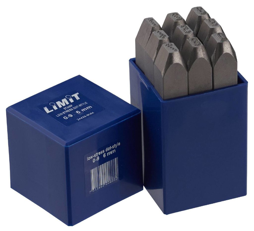 Stämplar för stål och metall. 9 sifferstämplar 0-9. För stämpling i material med draghållfastighet upp till 150 kp/mm². Designade för att skapa så lite stress i materialet som möjligt och är därför lämpliga för t.ex. trycktankar.