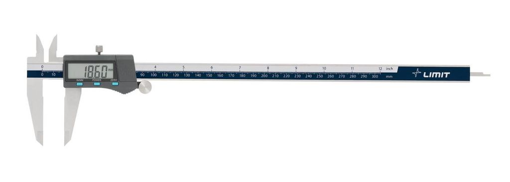 - Försett med rektangulär djupmåttsticka och spetsar för invändig mätning.
