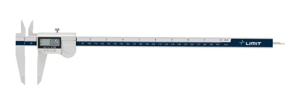 - Försett med rektangulär djupmåttsticka och spetsar för invändig mätning.