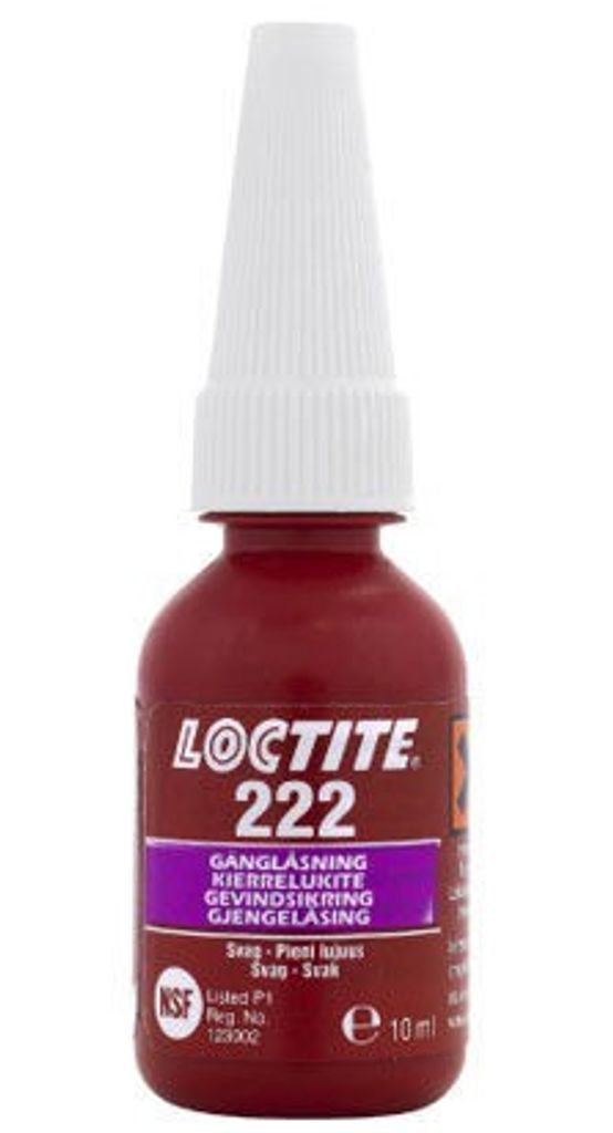 Loctite 222 är ett gänglåsningssystem med låg styrka, speciellt utformat för att förhindra självlossning i vibrerande delar som pumpar och växellådor. Trots sin låga styrka, medger den justering av skruvar och ställskruvar, vilket gör det enkelt att demontera med handverktyg. Detta gänglåsningssystem är särskilt lämpligt för metaller med låg styrka, som aluminium och mässing, där det finns risk för brott vid demontering. Loctite 222 har testats för motståndskraft mot mindre föroreningar som industrioljor. Den är också livsmedelsgodkänd och presenterar en purpurfärg.