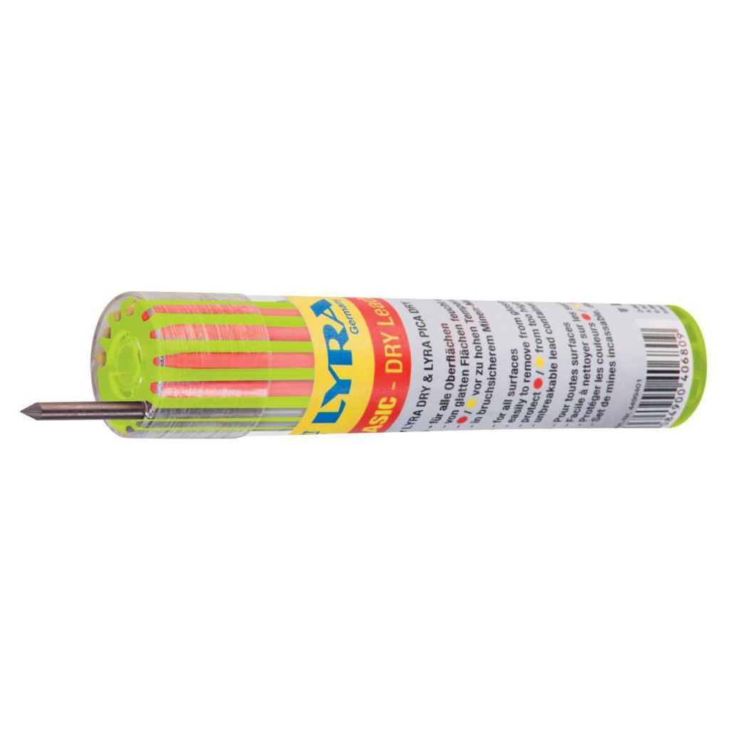 Reservstift i ny smart behållare som är stöttålig när den ligger i verktygslådan. Lyras reservstift passar även i Pica Dry pennan. Reservstift Dry Basic innehåller vattenlösliga stift som lätt kan torkas av från de flesta underlag.