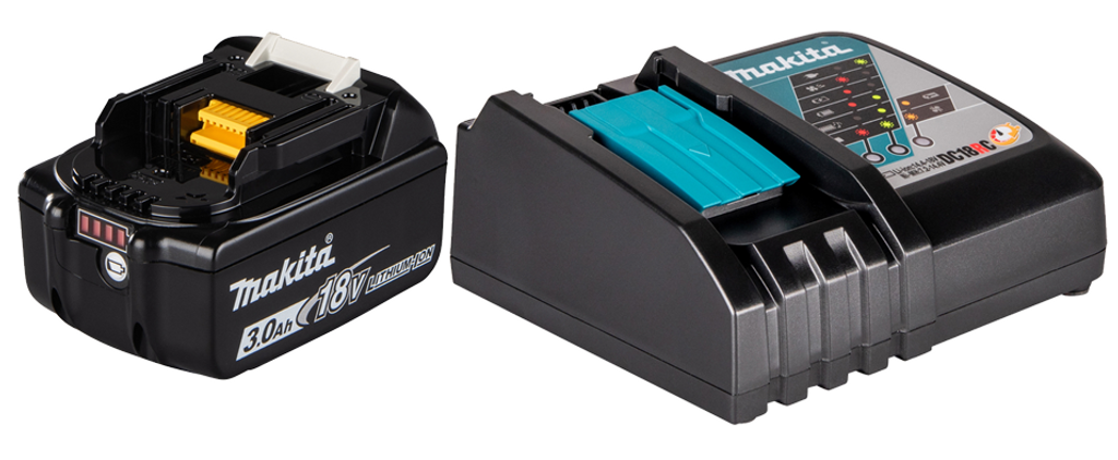 Makita 18V Powerpack innehåller ett kraftfullt 18V 3,0 Ah Li-ion batteri (BL1830B) med batteriindikator samt den snabba och effektiva laddaren DC18RC. Perfekt för dig som vill uppgradera eller komplettera ditt Makita LXT®-system. DC18RC laddar batterier mellan 14,4V och 18V med aktiv kylning och intelligent laddstyrning, vilket ger full laddning på så lite som 22 minuter. Batteriet passar till alla Makitas 18V-maskiner och ger pålitlig kraft med låg vikt och lång livslängd. Ett komplett startpaket för dig som vill ha maximal prestanda och drifttid.