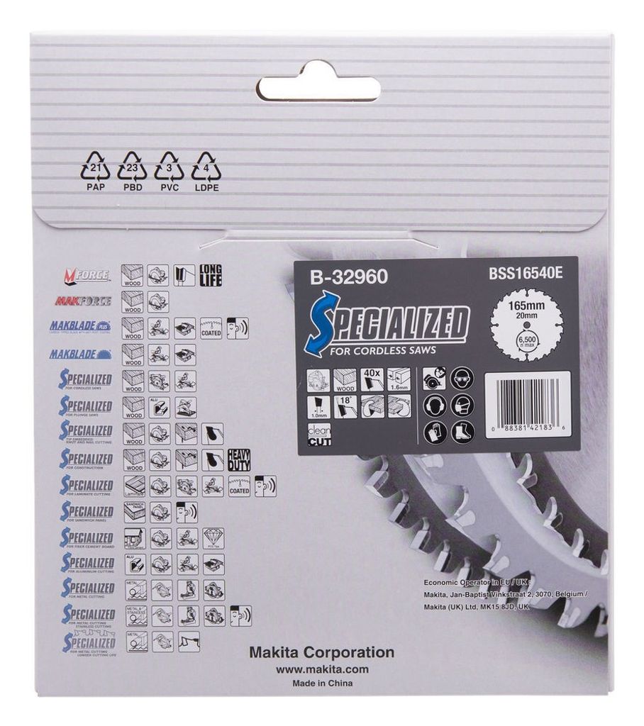 Makita B-32960 Sågklinga Specialized T.C.T, 165x20mm 40T