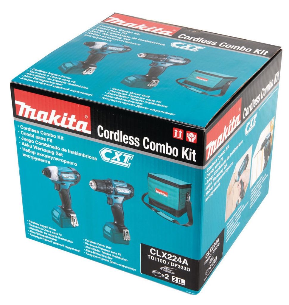 Makita CLX224A är ett batteridrivet 12V combokit med DF333DZ borrskruvdragare och TD110DZ slagskruvdragare. Levereras med 2 st 2,0 Ah batterier med 70 min laddningstid, laddare, samt MAKPAC.