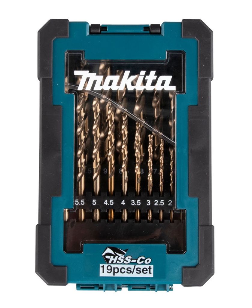Makita metallborrset. Ø 1-10 mm, 0,5 mm intervall. Kobolt. 118º borrspets. Stål och hårda legeringar.