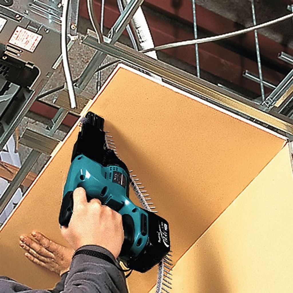 DFR450Z Makita Sladdlös 18V skruvautomat för bandad skruv. Ny förbättrad matardel för 25-41mm skruv med tyst och exakt justering av djupanhållet.