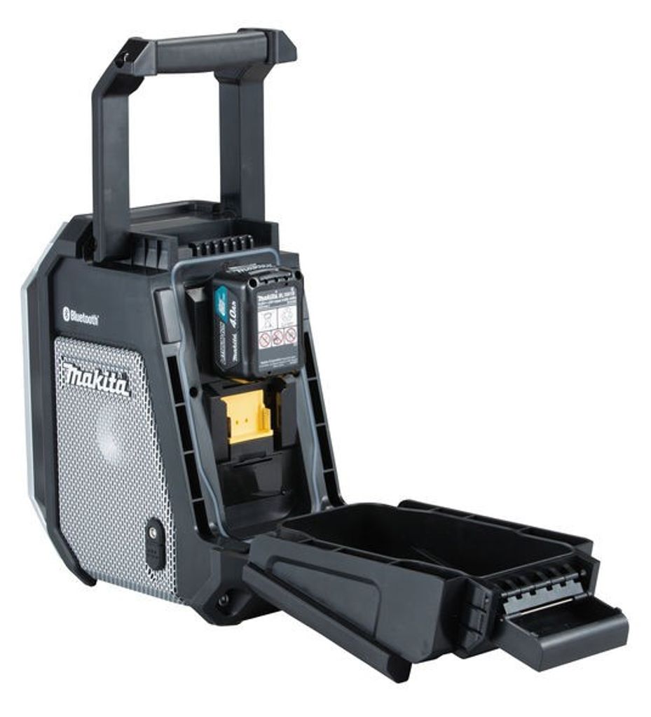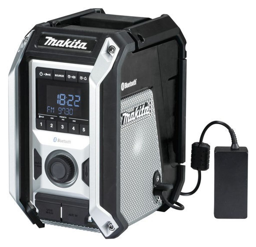 Makita DMR114B är en radio som drivs med batterier på 12-18V eller med den medföljande nätadaptern. Bluetooth-anslutning direkt till musikspelaren samt AUX-ingång. Stereon har även en USB-kontakt. Radio är också utrustad med väderskydd IP64 samt med sju valbara ljudlägen som är anpassade efter olika musikgenrer.