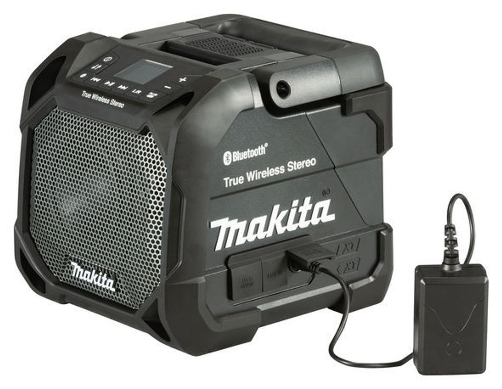 Makita DMR203B är en bluetooth högtalare som är utrustad med en skärm, Bluetooth,AUX och USB för att ladda din telefon samt 7 röstuppringningar. Fungerar med upp till 10 högtalare (mono), när du kopplar ihop 2 högtalare med varandra får du stereo-återgivning. Kompatibel med CXT- och LXT-batterier eller växelström.