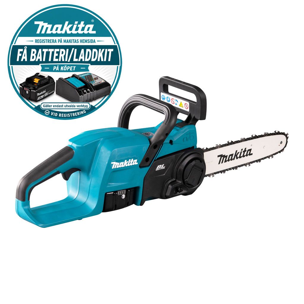 Makita DUC307 är en kraftfull kedjesåg som drivs av ett 18V batteri. Den har en robust konstruktion och är utrustad med en kolborstfri motor, vilket ger en effektiv och pålitlig prestanda.