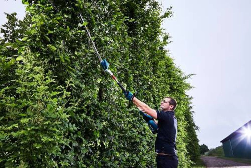 Makita DUN500WZ är en kolborstfri häcksax med extra lång axel. Mycket lämplig för beskärning av långa och höga häckar. Bladet är vinklingsbart till 115 grader, vilket gör det enkelt att även klippa av topparna på häckarna. Bladet kan enkelt transporteras eftersom det kan fällas ihop till hela 180 grader.