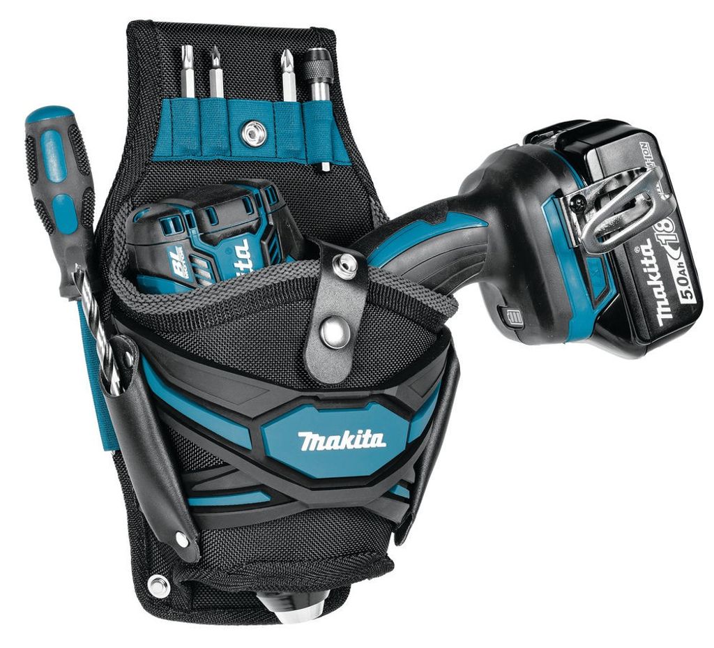 Makita E-15154 borr- och skruvdraghållare erbjuder praktisk förvaring och organisation av dina verktyg, och säkerställer säkert arbete även på höga arbetsplatser som stegar och byggnadsställningar.