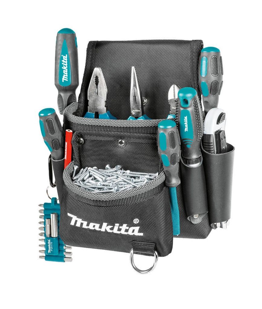 Makita E-15198 är en robust verktygsväska designad för att hålla dina verktyg, skruvar och spikar organiserade och lättillgängliga. Passar perfekt till Makita-verktygsbälten.