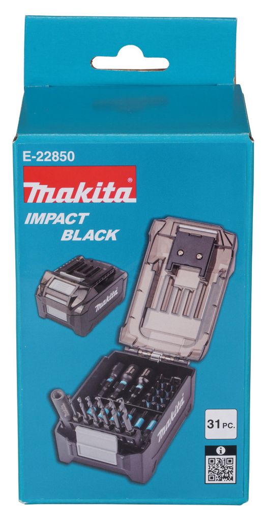 Makita E-22850 är en kompakt Impact Black bits och borrsats med 31 delar i smart batteriformad ask. Precisionstillverkade bits och HSS borrar med 1 4 fäste ger optimalt grepp och lång livslängd i slagdragare. S2 stål och extra värmebehandling ökar hållfastheten medan magnetisk bitshållare och magnetiska hylsor gör jobbet snabbare och säkrare i metall trä och plast.
