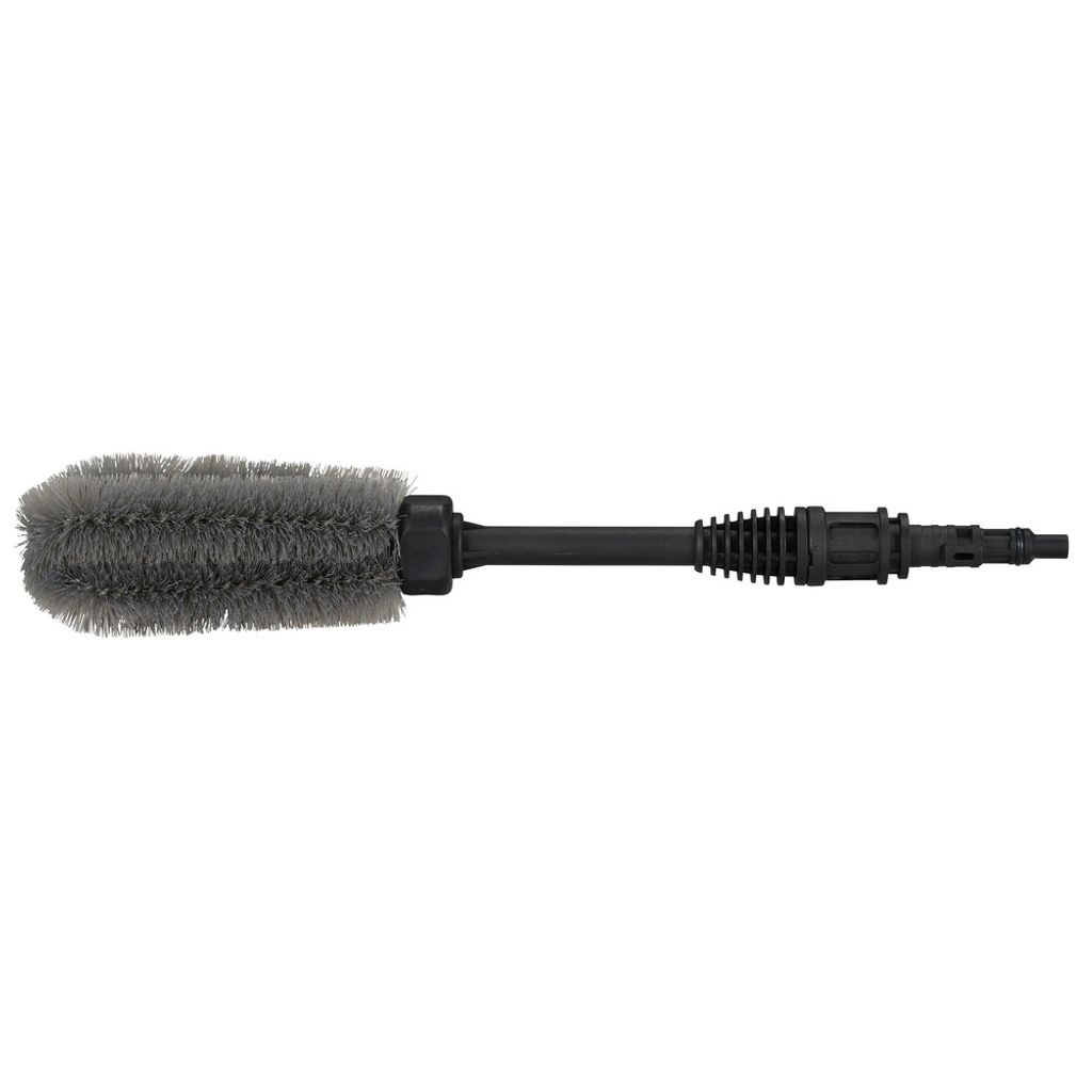 Konstruktionen gör det enkelt att komma åt i trånga utrymmen som ekrar, bultcirklar och smala fälgbanor. Den jämna vattenmatningen hjälper rengöringsmedel att verka där det behövs och håller borsten ren under arbetet. Resultatet blir en mer kontrollerad rengöring av mindre föremål som fälgar, cyklar, barnvagnar, verktyg och andra detaljer där en vanlig munstycksstråle kan vara svår att styra.