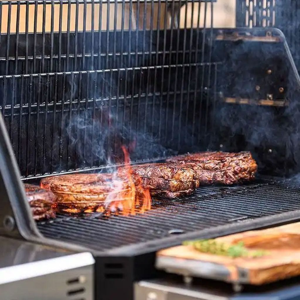 Masterbuilt Gravity Series 1050 digital kolgrill + rök erbjuder mångsidig matlagning med exakt temperaturkontroll och långvarig bränsleförsörjning.