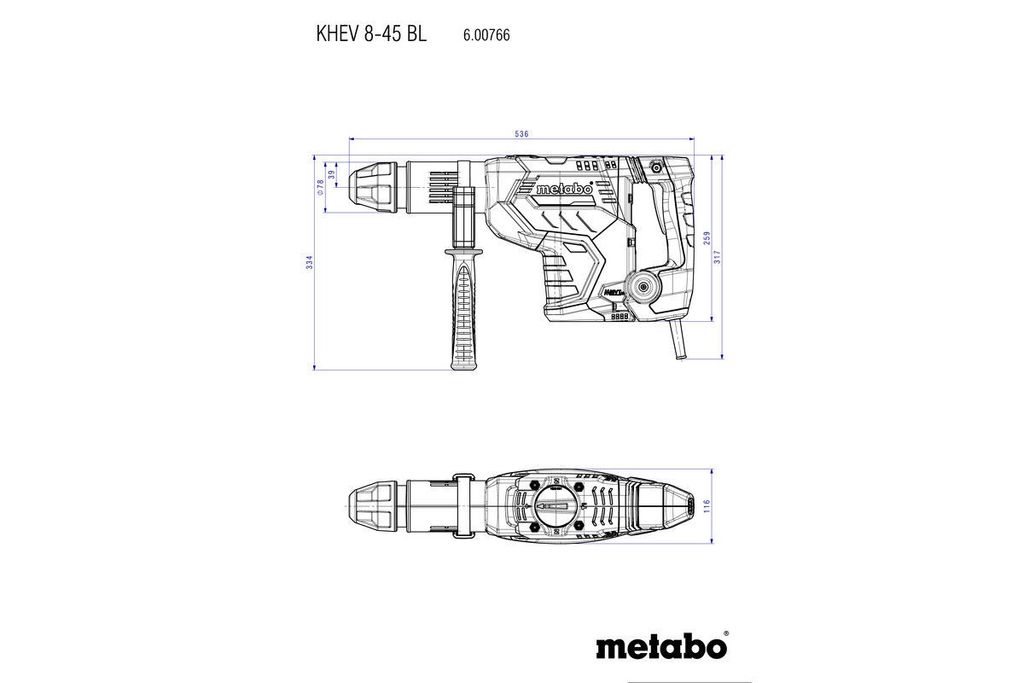 Metabo KHEV 8-45 BL är en högpresterande kombihammare designad för professionella användare som kräver maximal kraft, hållbarhet och ergonomi. Med en imponerande slagenergi på upp till 12,2 joule och SDS-max-fäste klarar den tuffa jobb som borrning i betong, mejsling och arbete med stora hålsågar i murverk.