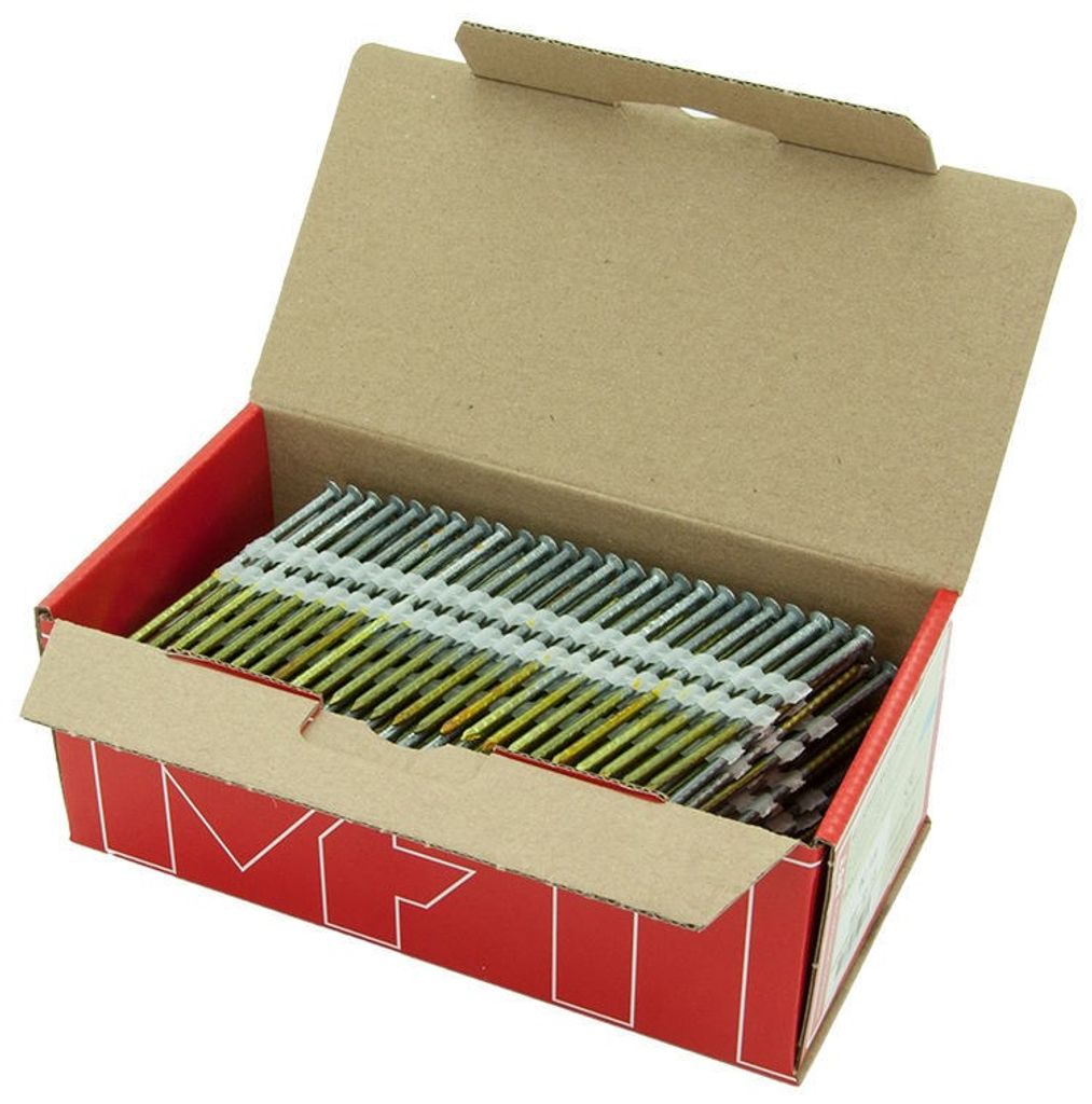 MFT varmgalvad stavspik för spikpistoler med 21° magasin, anpassad för tryckluft, gas eller batteridrivna spikpistoler. Kammad spik för säkert grepp och pålitlig infästning vid normal användning både inom- och utomhus. Levereras i praktisk förpackning med 500 st för ett effektivt arbetsflöde på bygget.